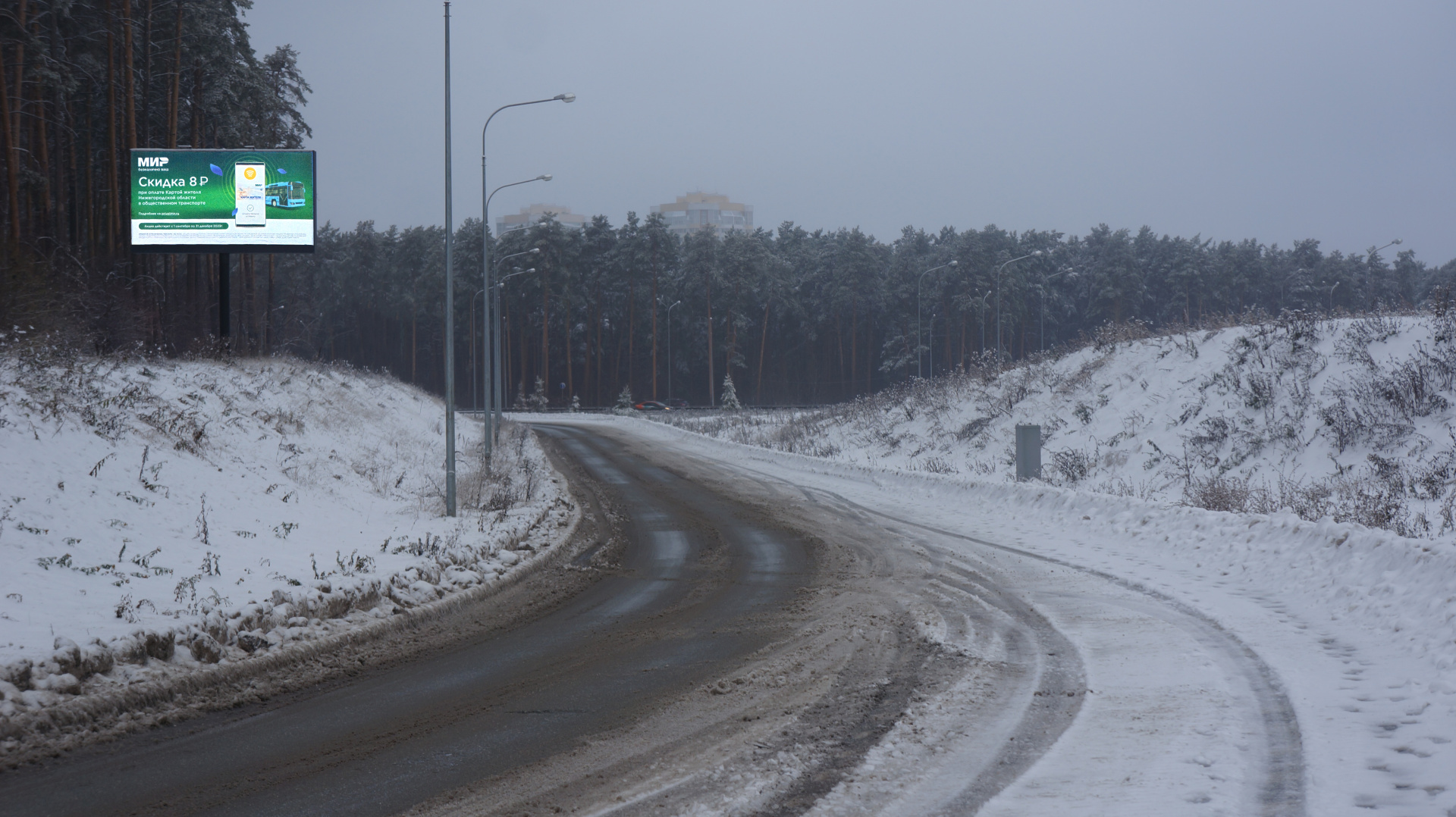 Крупная транспортная развязка, выезд с объездной дороги в сторону города, повышенный автомобильный трафик