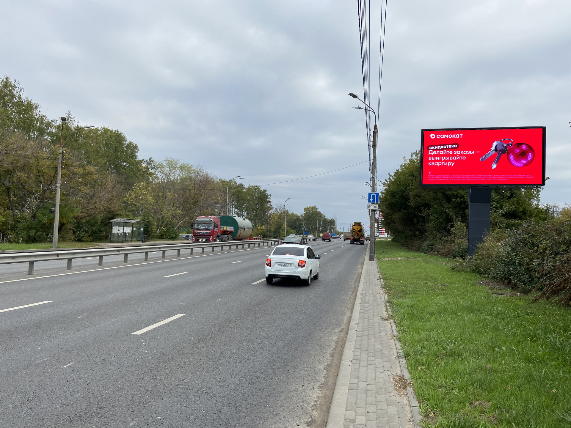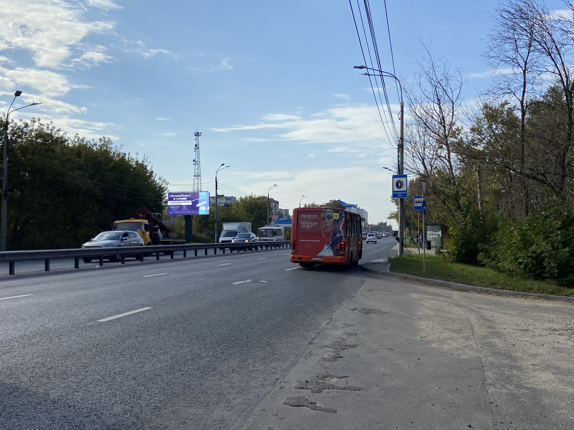 Крупный траснортный поток. Светофор. Трасса м7 по направлению из Москвы в Казань. Отличная просматриваемость.АЗС Лукойл