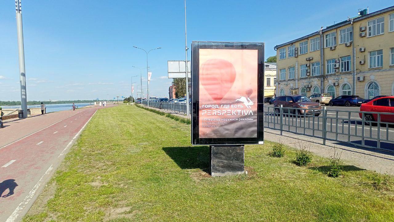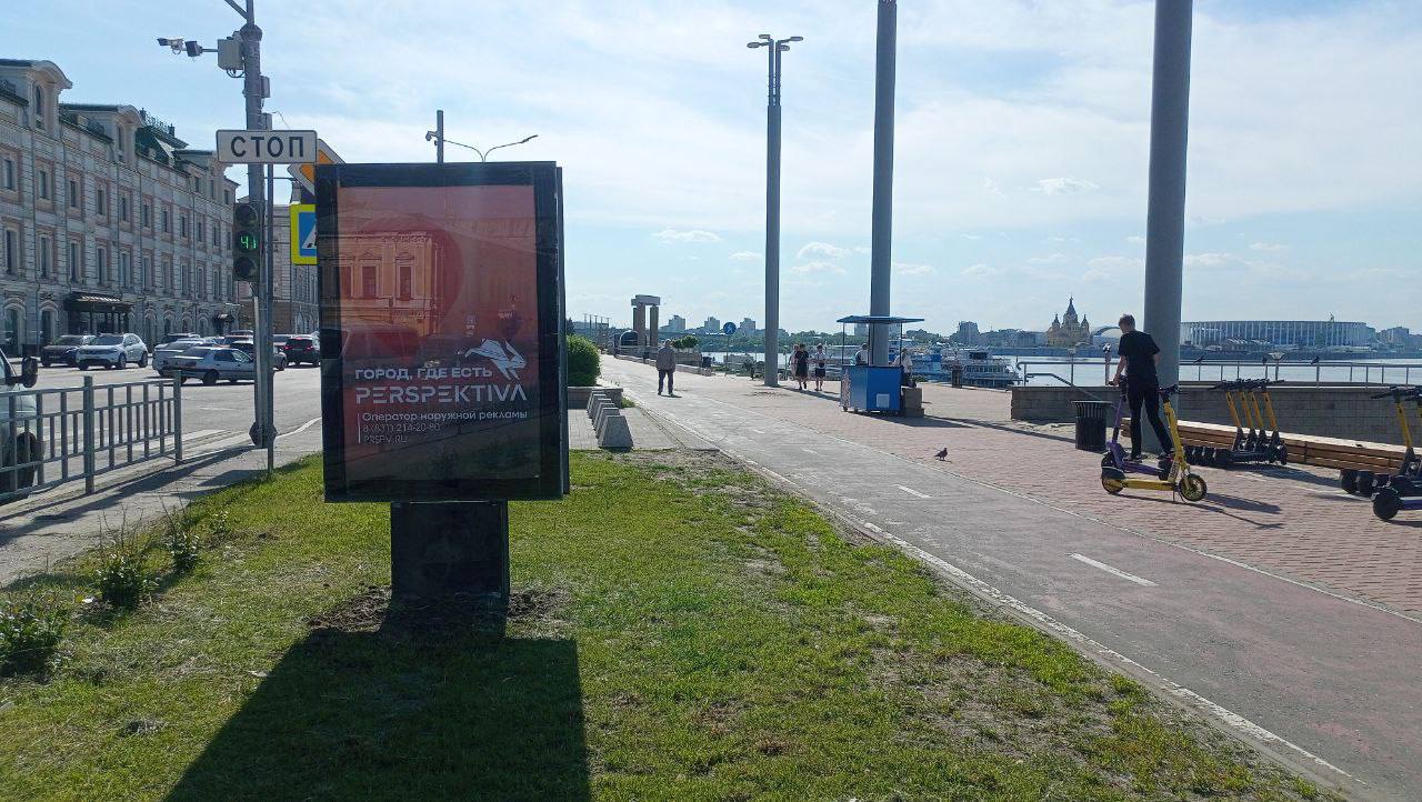 Конструкция расположена на одной из главных пешеходных зон города - Нижне-Волжской набережной, повышенный людской трафик в вечернее врямя, выходные и праздничные дни, рядом большое количество увеселительных заведений